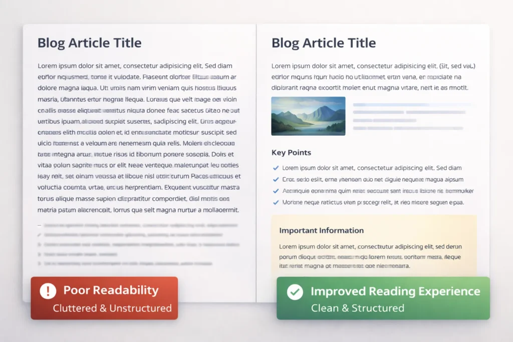 Even excellent content fails when the reading experience is poor.