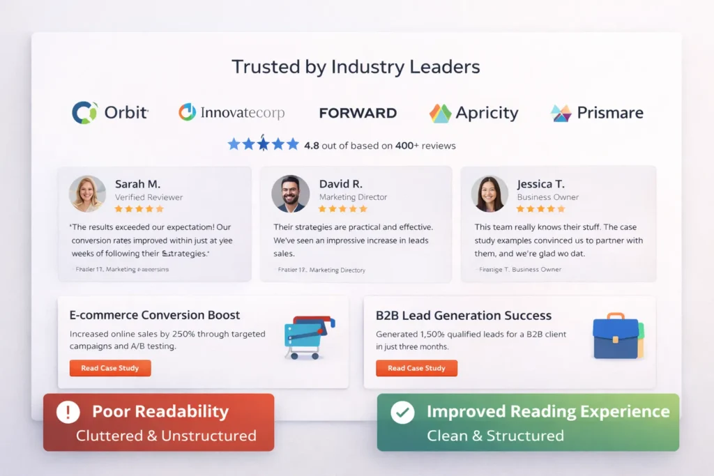 Yes. Clean layout, spacing, and structure improve reading comfort and trust, which directly increases action rates.