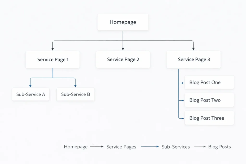 Internal linking for service works best when the structure is simple and logical.
