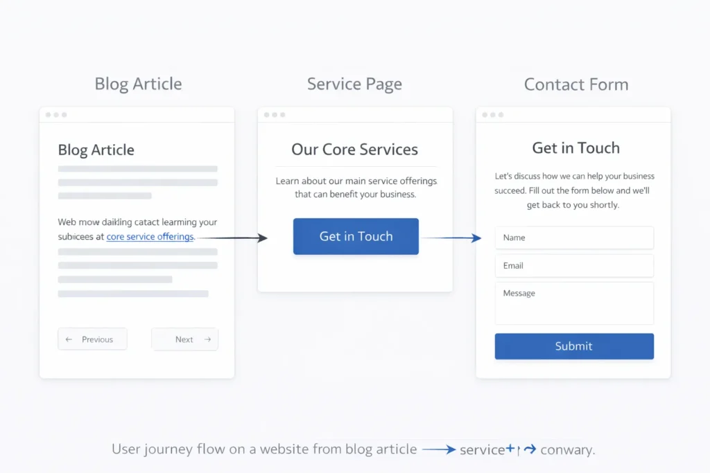 Users land on blogs but never reach service pages.