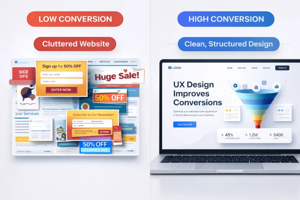 UX design is not just about aesthetics. It is a strategic layer that influences how users think, feel, and act on your website. When implemented correctly, UX design improves clarity, reduces friction, and builds confidence—three critical elements required for conversions.