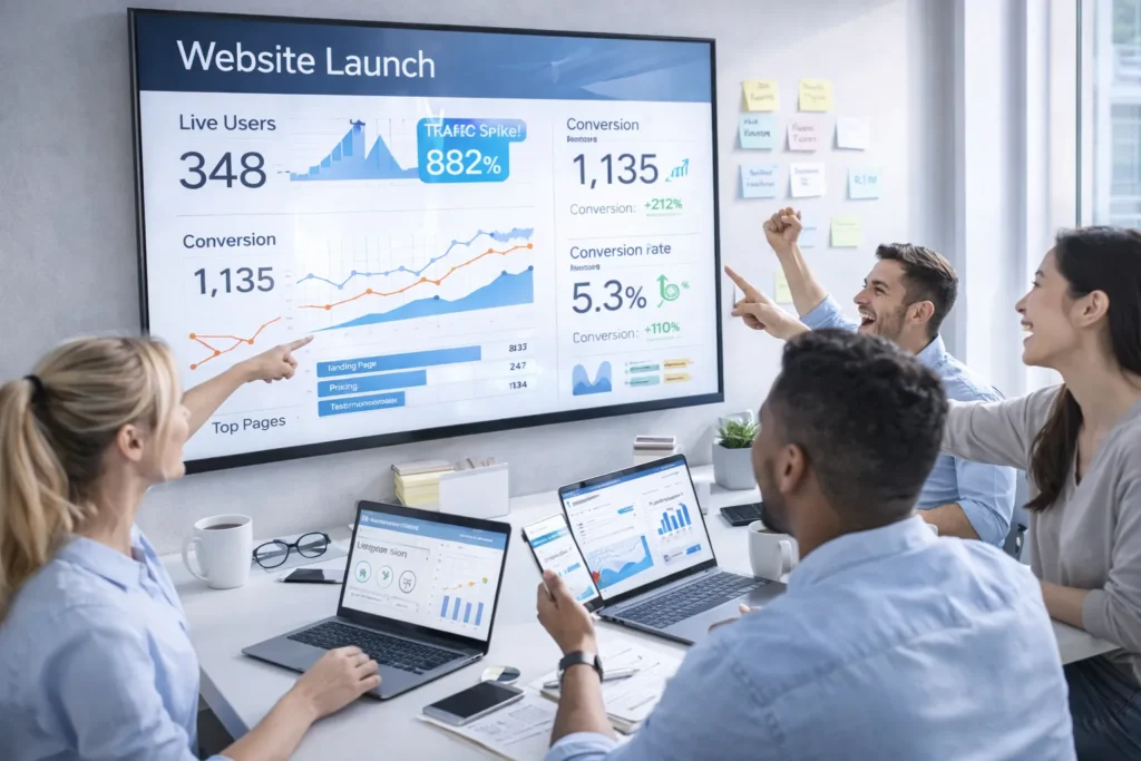 Your announcement generates initial traffic spikes and creates buzz around your improved website.