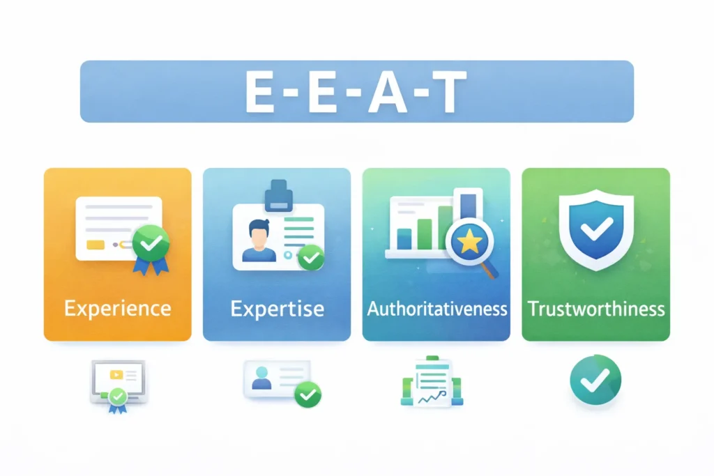 E-E-A-T stands for Experience, Expertise, Authoritativeness, and Trustworthiness. These are the quality signals Google uses to evaluate content credibility, especially for topics affecting health, finance, safety, and major life decisions.